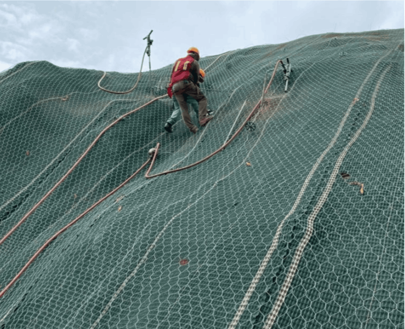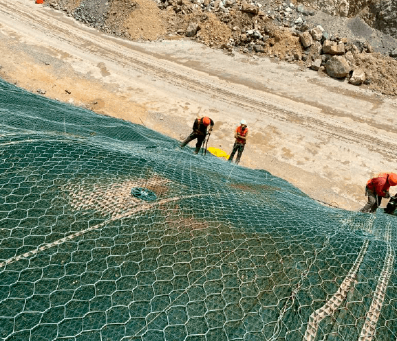 Instalación de manta Pyramat® 75 malla metálica de triple torsión