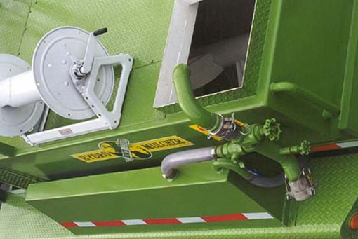 Lancer 600 de Bowie , puede aplicar su producto desde la plataforma de trabajo usando el cañón de descarga o desde el suelo usando una manguera. Puede cubrir más área con menos trabajo. Esta unidad usa un embrague para operar el agitador de tamaño completo y otro para operar la bomba. Está disponible como una unidad montada sobre patines o remolque.