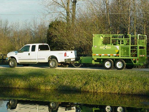 La unidad de remolque cuenta con un eje torflex en tándem de 7000 lb, frenos eléctricos en ambos ejes, luces de marcha DOT y un enganche de bola o pivote ajustable.
